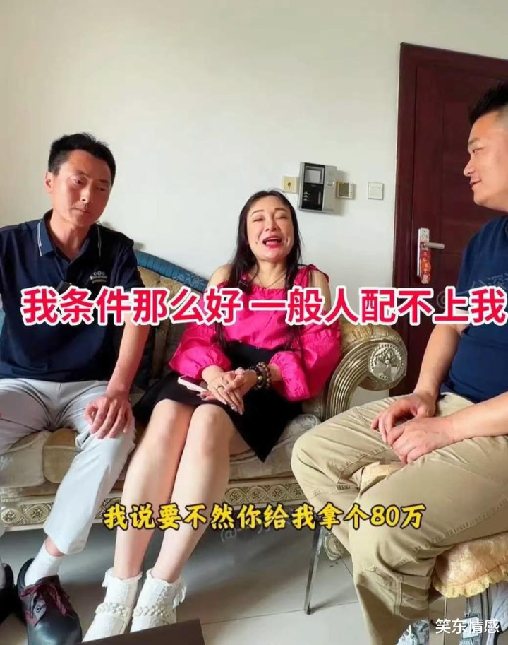 张女士直言不讳地把她的负担讲出来,王大叔没有反感,反而觉得张女士是个有责任心的女人,他的好感更上一层楼。张女士趁热打铁讲出她的诉求,她要80万彩礼,要求王大叔风风光光地把她娶进门,扬言她长得漂亮又很年轻,追求她的男人多得是,无论哪个男人娶她都是天大的福气!